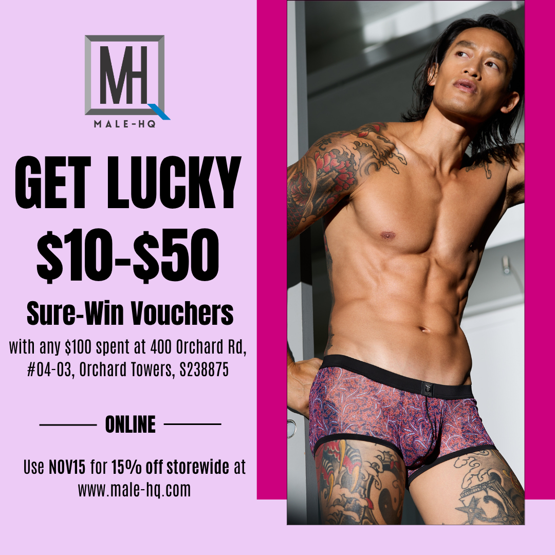 Sure-win vouchers of $10 to $50 with any $100 spent in a single receipt in-store at 400 Orchard Road, #04-03, Orchard Towers, Singapore 238875. Over $2,000 worth of vouchers to be won.