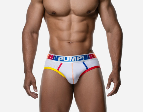 PUMP! Underwear Spectrum Brief celebrates color with a bold mix of piping, stitching, and a multicolor waistband that makes a statement. Lightweight mesh keeps you well-ventilated, while the double-layered cotton cup keeps you optimally supported. Proudly designed to move and stand with you.